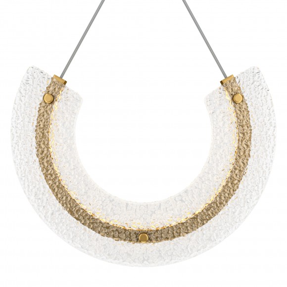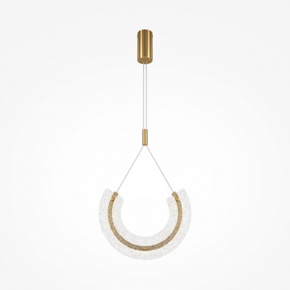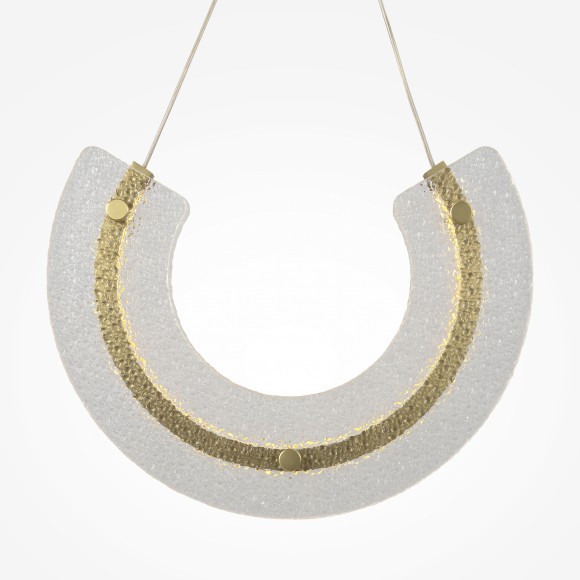 LED Griestu lampa Maytoni Maya kolekcija, vācu ražotājs. Lampas pamatne izgatavota no metāla un nokrāsota misiņa krāsā, dekorēta ar caurspīdīgiem kristāliem. Lampas augstumu ir iespējams regulēt 50-186,5cm, platums 4,1cm un garums 32cm. Iestrādatas LED diodes ar kopējo jaudu 10W. Izstaro silti baltu gaismu 3000K, gaismas plūsma 350lm. Paredzēta uzstādīšanai iekštelpās, aizsardzības pakāpe IP20.