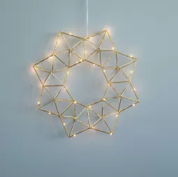 Misiņa krāsas gaismas dekors ir piemērots uzstādīšanai iekštelpās, piekarot. Tas ir veidots no 25 LE..