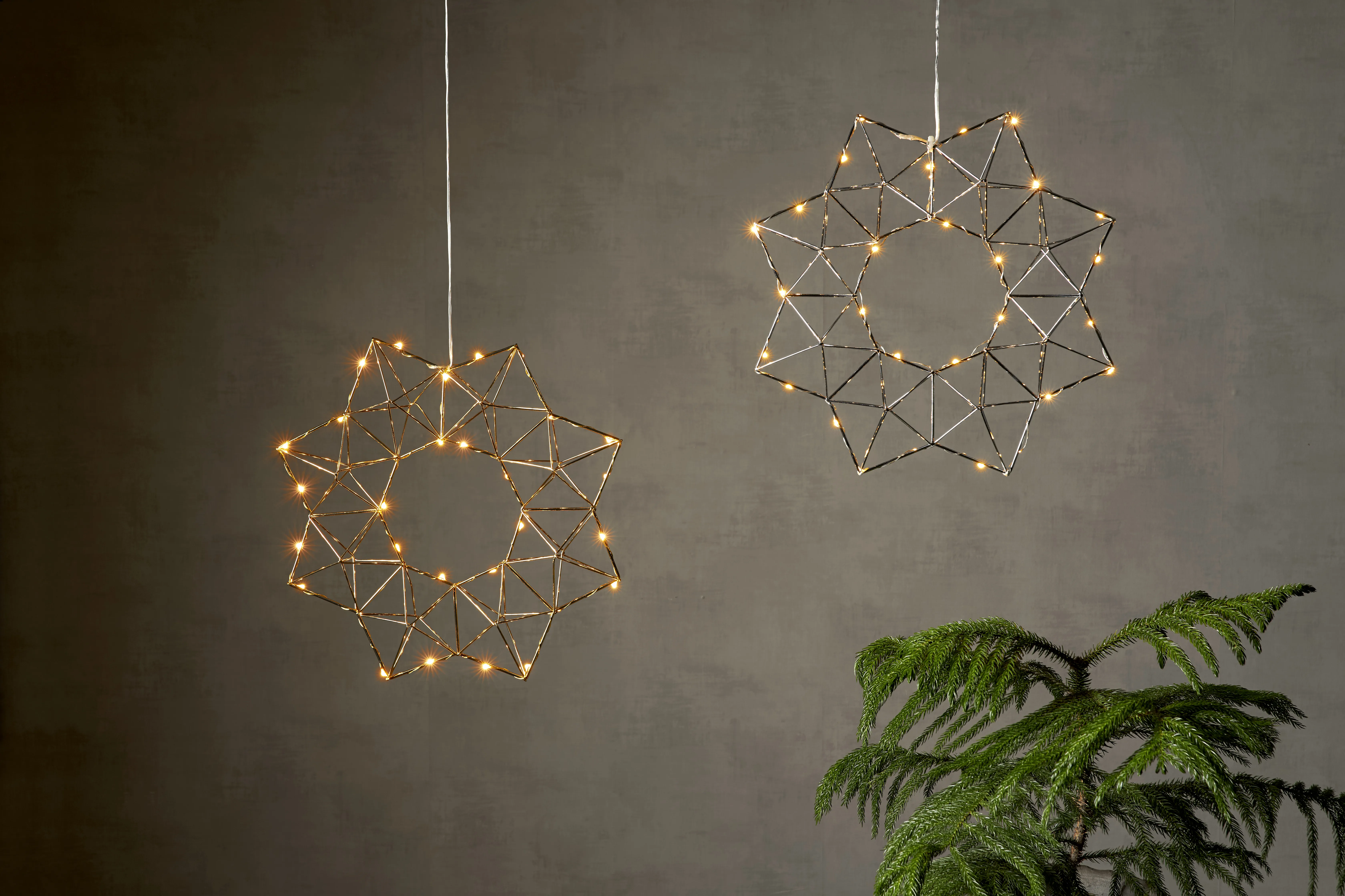 LED lampiņas radīs patīkami maigu gaismu, ievietojot tās dekoratīvajās zvaigznēs. Virtenī ir iestrād..